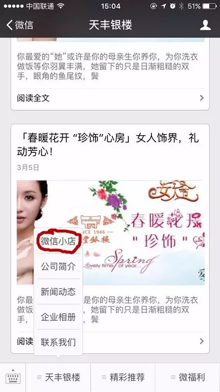 怎样才能快度拿到心意的礼物呢,告诉亲们一个好方法,只需亲在天丰银楼公众平台的菜单栏中点击“微信小店”(如下图),节日礼物全在这。动动手指,心爱的礼物就到手了!