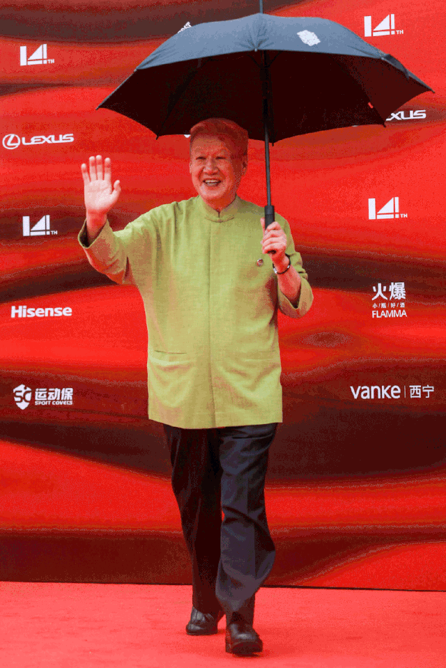 名誉主席谢飞佩戴纪念胸章出席星光红毯&颁奖典礼
